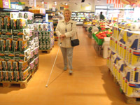 An der Straßenbahnhaltestelle: Einstieg in die Bahn, doch zunächst Aufsuchen der Tür mit dem Langstock!